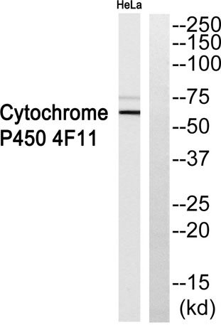| Immunogen: | The antiserum was produced against synthesized peptide derived from human Cytochrome P450 4F11. AA range:341-390 |