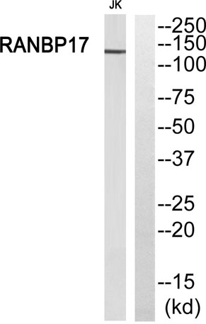 | Immunogen: | The antiserum was produced against synthesized peptide derived from human RANBP17. AA range:145-194 |