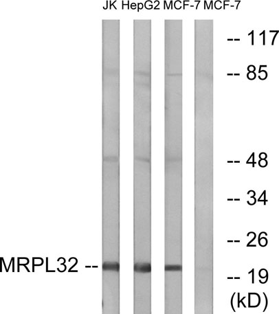 | Alternative Names: | MRPL32; HSPC283; 39S ribosomal protein L32; mitochondrial; L32mt; MRP-L32 |