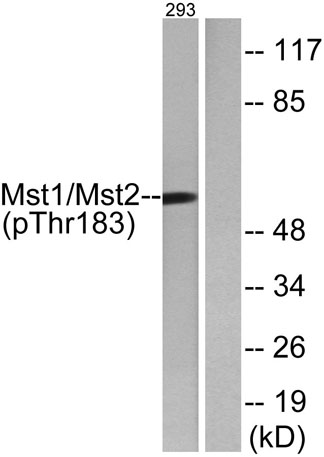 | Immunogen: | The antiserum was produced against synthesized peptide derived from human Mst1/2 around the phosphorylation site of Thr183. AA range:149-198 |