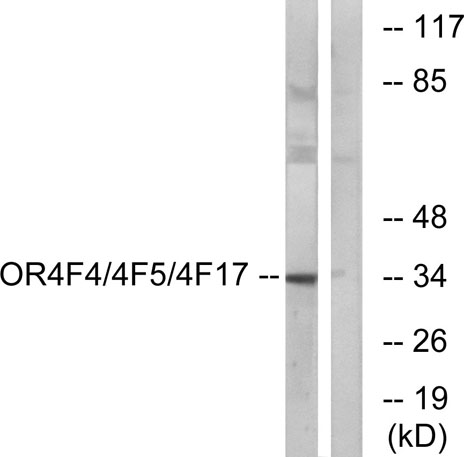 | Immunogen: | The antiserum was produced against synthesized peptide derived from human OR4F4/4F5/4F17. AA range:51-100 |