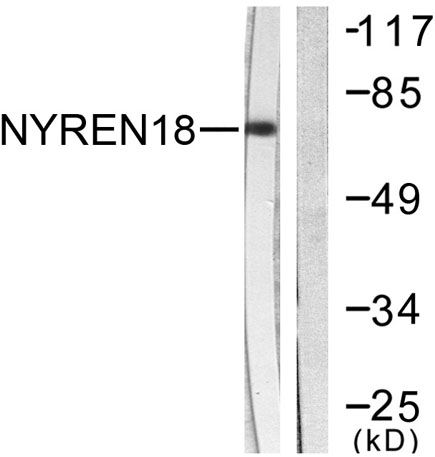 | Immunogen: | The antiserum was produced against synthesized peptide derived from human NYREN18. AA range:566-615 |