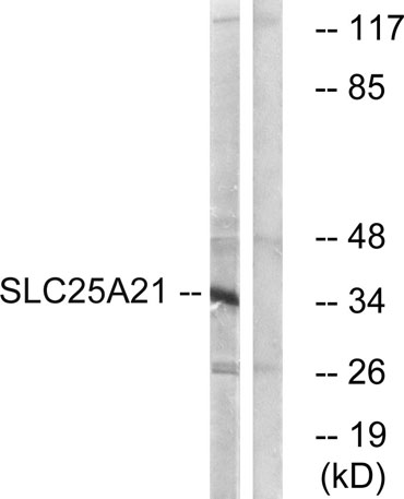 | Alternative Names: | SLC25A21; ODC; Mitochondrial 2-oxodicarboxylate carrier; Solute carrier family 25 member 21 |