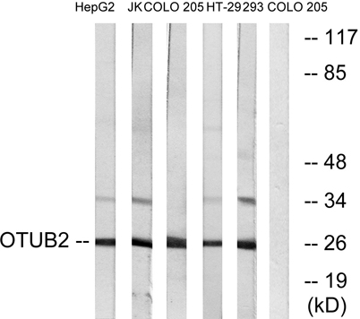 | Immunogen: | The antiserum was produced against synthesized peptide derived from human OTUB2. AA range:133-182 |