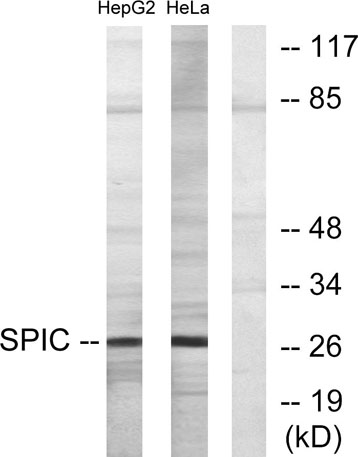 The antiserum was produced against synthesized peptide derived from human SPIC. AA range:131-180