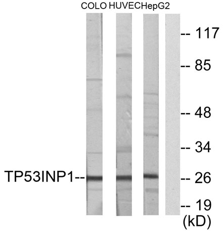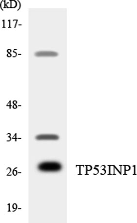 The antiserum was produced against synthesized peptide derived from human TP53INP1. AA range:171-220