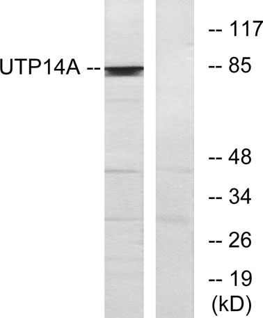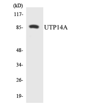 The antiserum was produced against synthesized peptide derived from human UTP14A. AA range:321-370