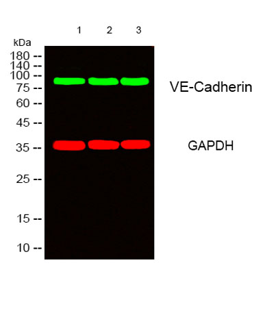 The antiserum was produced against synthesized peptide derived from the Internal region of human CDH5. AA range:391-440