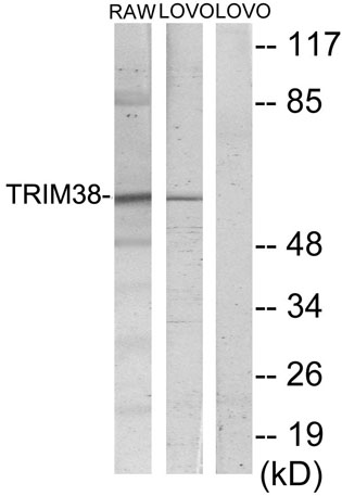 | Immunogen: | The antiserum was produced against synthesized peptide derived from human TRIM38. AA range:161-210 |